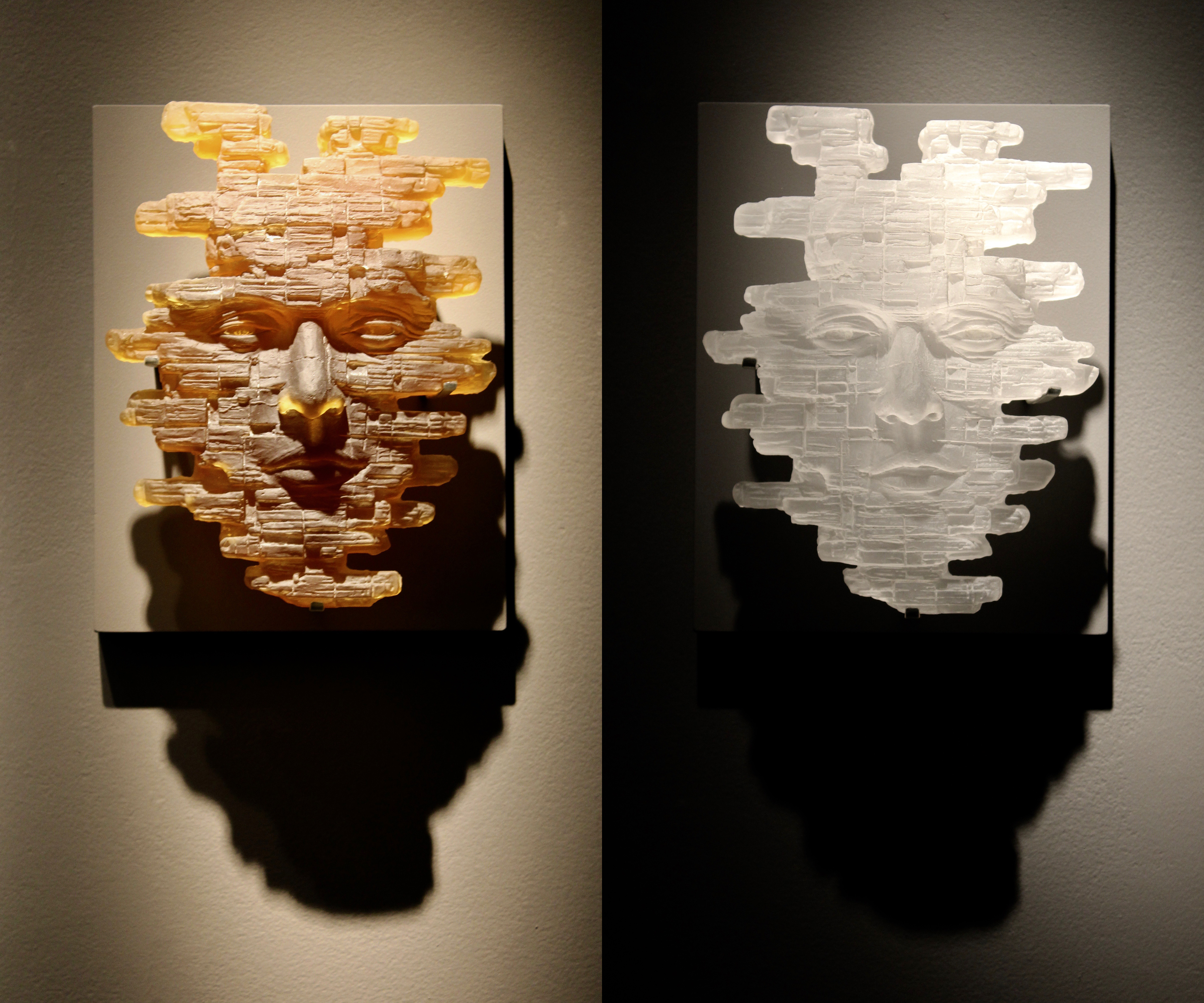 Cast glass, 10″ H X 8″ W X 3.5″ D