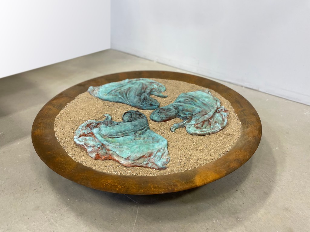 Cast plaster, sand, metal, 38.5″ round, 6.5″ H